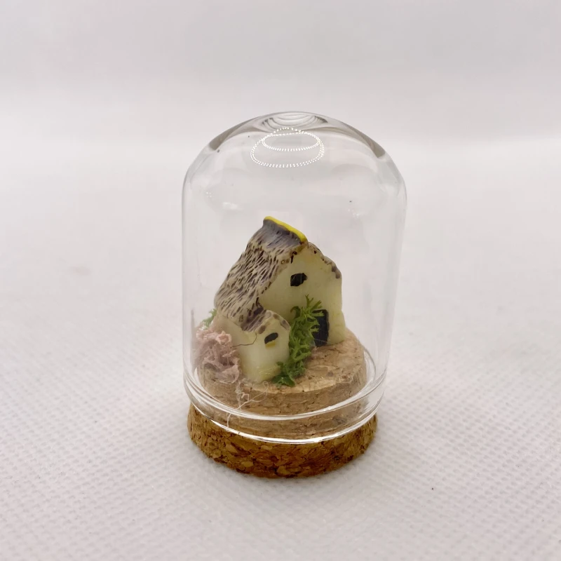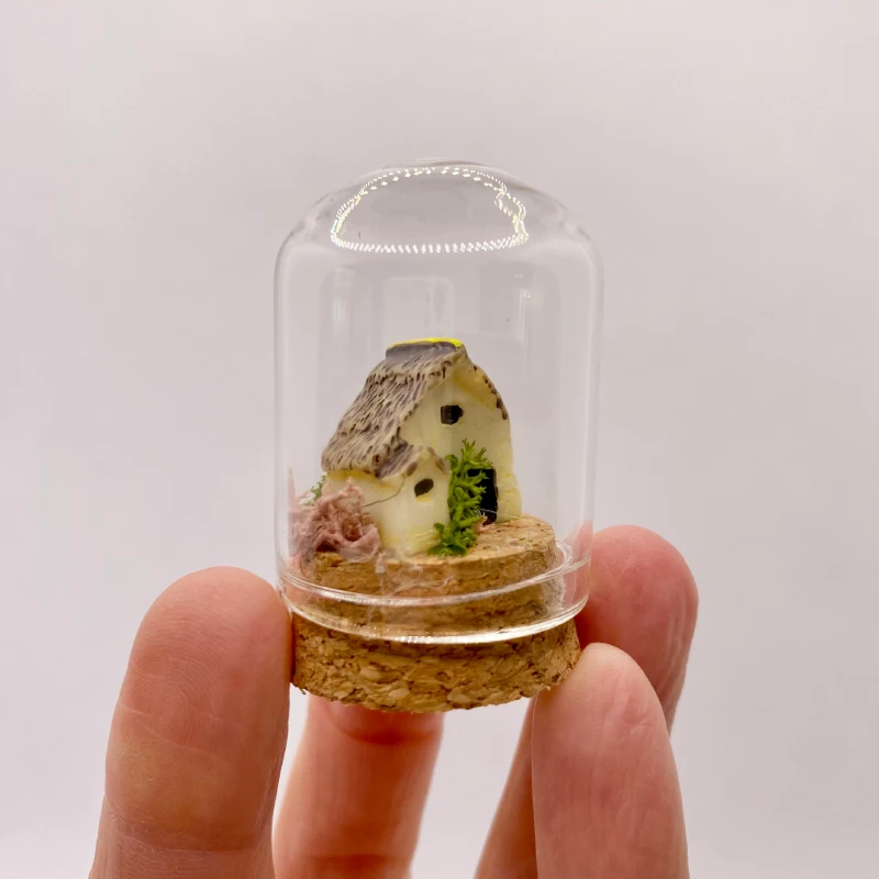 Step into a world of tiny magic with our Dinky Domes — little glass domes with natural cork bases, each 5cm tall and 3cm wide. Inside every dome is a hand-crafted miniature scene, created with tiny characters, shells, flowers, moss and other delicate details. Each one is completely unique.