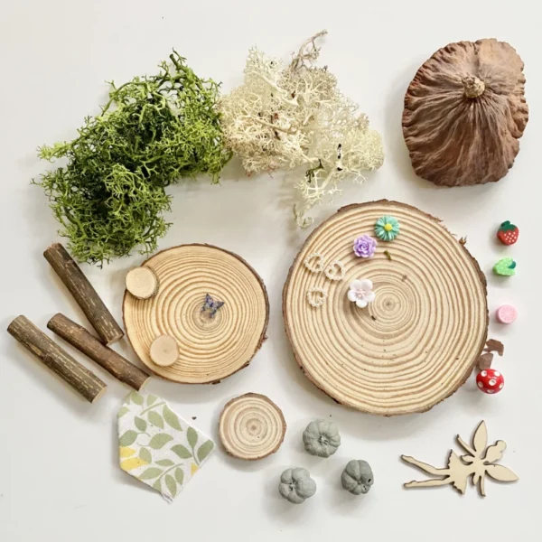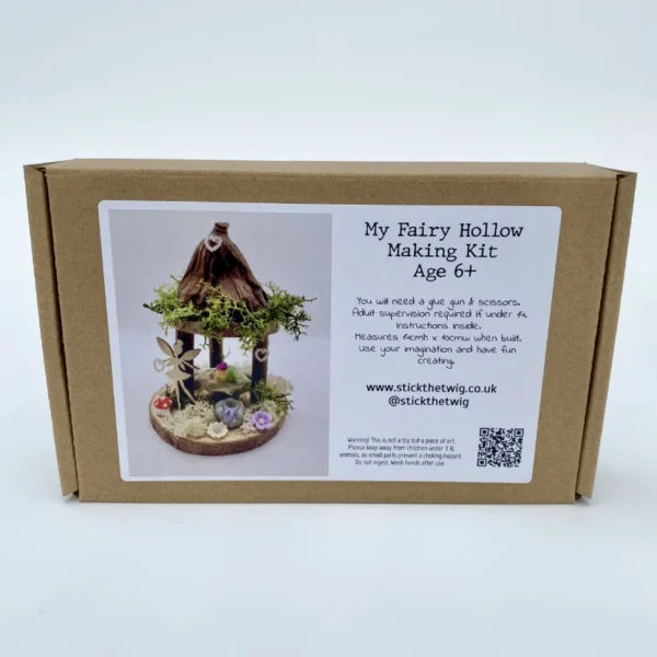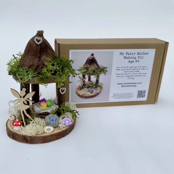 Bring a little fairy magic to life! Build your own fairy hollow using natural materials and miniature treasures. Follow the included instructions or let your imagination run wild — every creation is unique! All you need is a glue gun (suitable for wood, stone, and plastic) with optional scissors and tweezers for extra precision.