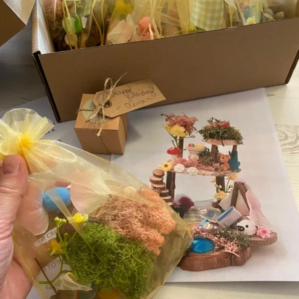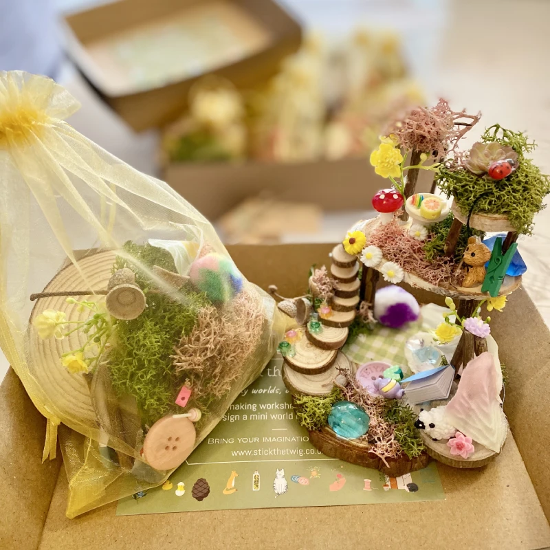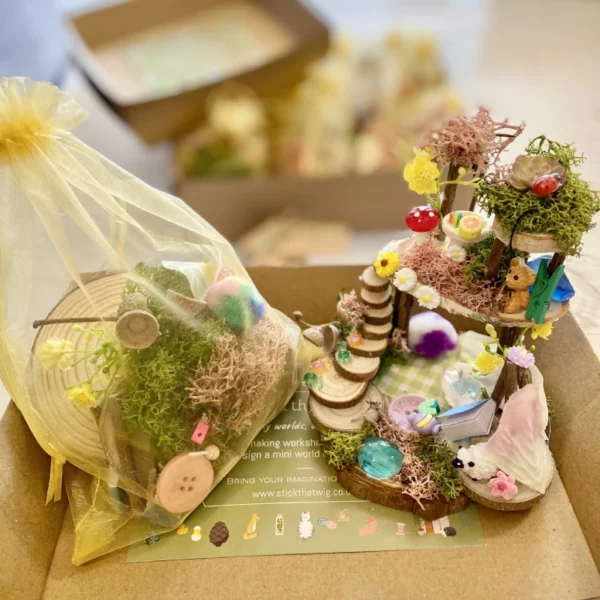 Party Kits with Stick the Twig are a fantastic and original way to host a creative gathering in your own home or chosen venue. Perfect for birthdays, family get-togethers, team building events or simply a day of imaginative fun, each kit gives guests everything they need to craft their own enchanting mini world.