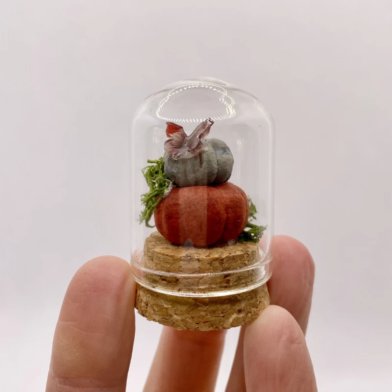 Step into a world of tiny magic with our Dinky Domes — little glass domes with natural cork bases, each 5cm tall and 3cm wide. Inside every dome is a hand-crafted miniature scene, created with tiny characters, shells, flowers, moss and other delicate details. Each one is completely unique.